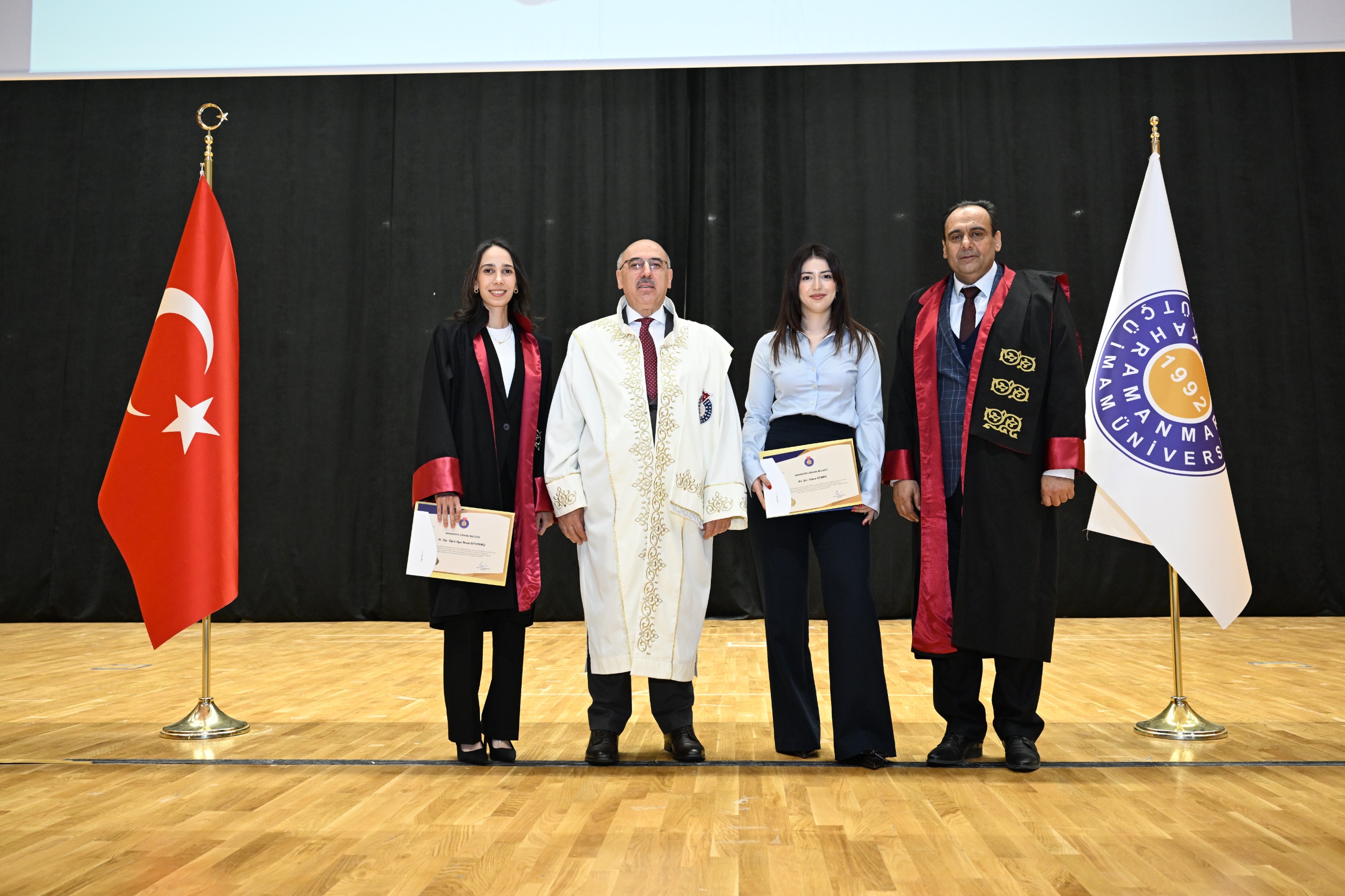 Üniversitemizde 2025 yılında doçentlik ve doktor öğretim üyeliği kadrolarına atanan akademisyenler ile öğretim görevlisi ve araştırma görevlileri için “2025 Yılı Akademik Atamalar Belge Töreni” düzenlendi. Törende Fakültemize yeni başlayan Dr. Öğretim Üyesi Ayşe Hazal BOYANMIŞ ve Araştırma Görevlisi Dilara KUMRU'ya Rektör V. Mahmut AK tarafından belgeleri takdim edilmiştir. Öğretim elemanlarımızı tebrik eder başarılar dileriz.